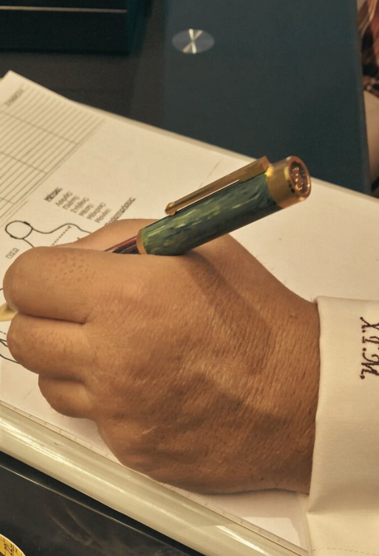 Harry visits each client personally to take precise measurements and guide them in selecting the ideal materials, patterns, and details.
